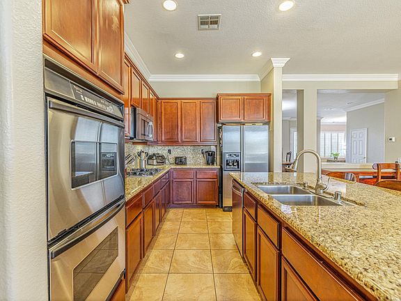 Recently updated and shows beautifully inside and out! Located in the prestigious gated community of Portofino Estates, this 4 bedroom, 3 bath home with bonus room (presently used as an office) offers nearly 3,000 sq ft with an open and bright layout. The bonus room was offered as an optional 5th bedroom by the builder and only needs a closet to convert it to a full size bedroom. Its plantation shutters, crown molding and oversized master suite with french doors are but a few of its various elegant upgrades. The backyard offers a large covered patio with mature trees, grapevines, new sod and plenty of room for a pool! Hurry, this one won't last long!