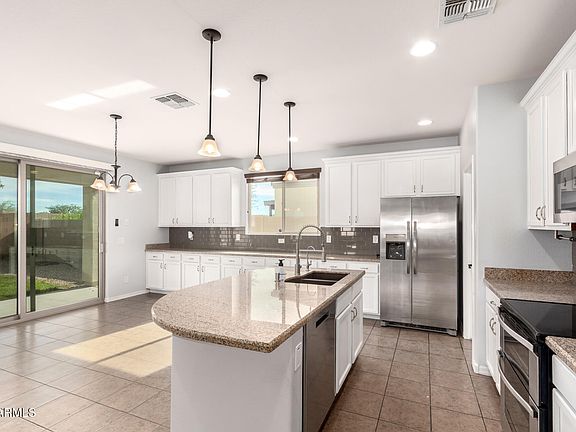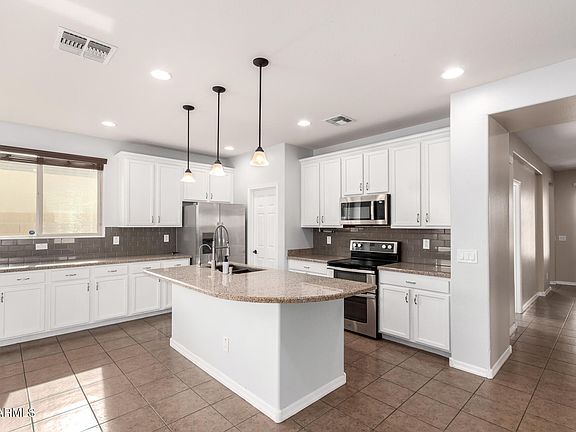 Six Bedrooms! Two bedrooms on first floor. No carpet in house. Flooring is Tile & mostly Luxury Vinyl Planks (the good stuff). Large kitchen w/granite counters & Island. Lots of extended cabinets! Great big walk-in pantry! Light & bright. Kitchen opens to extra-large family room. 4 bedrooms upstairs including huge master bedroom w/extra big walk-in closet. Master bath has walk-in shower. Laundry room upstairs-washer,dryer stay. Massive storage under the stairs! Big covered patio faces east for shade in the afternoon/evening. Some grass in back for your dogs. No neighbors behind! Stainless steel appliances. THREE car tandem garage. Water softener included. Within a couple of miles of downtown Queen Creek & US 24 highway. Convencience w/peace and quiet. Clean & Move-in-Ready!