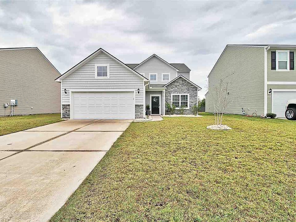 4 bedrooms 3.5 baths open floorplan with loft Sellers have made many upgrades to this beautiful home! It is one of only two with stone front on Alvina Way. A dry bar has been added to the eat-in kitchen area providing extra storage and wine fridge. The kitchen light fixtures have also been upgraded and a fan was added to the living room. They have installed a 60 amp plug-in in the garage for an electric car. This is a natural gas neighborhood and there is also a gas line installed for your grill outside. Additional shelving has been added in the master closet. One of the bedrooms upstairs is used as a gym and has foam tile flooring already installed. For your comfort outside, they have installed an additional 9 x 15 paver patio. Attractive river rock has been added to the front and side landscape beds. You will appreciate the large open ground floor plan and extra room for office or formal dining. All the bedrooms are spacious and there is a huge loft that would make a great play room upstairs. This home is immaculate and has been decorated with clean lines and contemporary decor. Berkshire Forest is easy access to shopping, dining, medical facilities and the Intracoastal Waterway and the beach. SQUARE FOOTAGE IS APPROXIMATE AND NOT GUARANTEED. BUYER IS RESPONSIBLE FOR VERIFICATION.