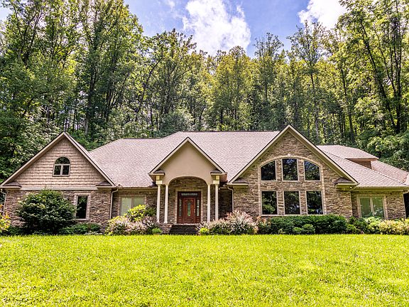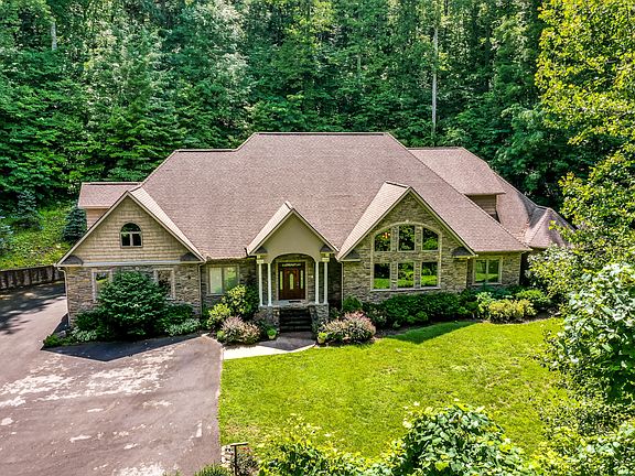 There is nothing else like this in the Great Smoky Mountains. The Burning Tree Mansion represents almost 8,000 sq feet of luxury, attention to detail, and amenity on 5 very private acres. The approach to the property is paved county-maintained roadway to the private paved driveway. A large parking area greets you just in front of the property's two garages with room for up to 5 vehicles. As you come upon the residence, you'll notice professionally-maintained flowers, shrubs, and trees surrounding the home, and even more along the tree line. An elevator with a ramp makes accessing the home a breeze, even for those with mobility challenges. Inside, enjoy the very best construction and appointment with custom moldings, hardwood floors, huge exposed beams, and a perfect flow from room to room. The great room features a cathedral ceiling with large beams that were hand-selected by the owner/designer. A gas fireplace and huge windows also appoint the room, which opens to the quintessential formal dining room. The kitchen with its gorgeous countertops and stainless appliances is a chef's dream. A formal library with shelves to the ceiling provides a great setting for a quiet respite or perhaps an impressive billiards room. The master bedroom, on the main level, is huge with enough space for a king bed and a large seating area in front of the big windows. It also features not one but two bathrooms making it the ultimate suite complete with heated floors, large closets, and spacious showers. While a 4-bedroom property, bonus rooms abound at the Burning Tree mansion. Each bedroom features an attached full bath, and many feature their own tv room or den. If considered for an investment property, B&B, or wedding venue, this home can accommodate dozens of guests for the day or overnight. Ask your agent for a complete list of all of the amenities offered with this home.
