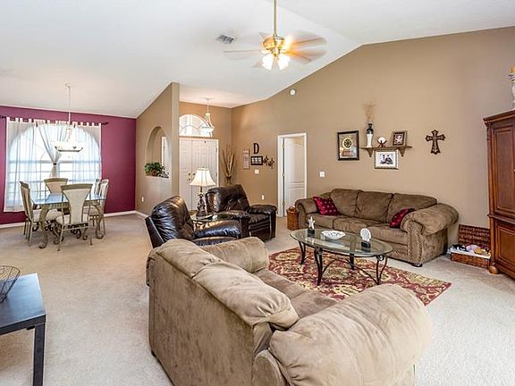 Three Wishes! Quality, Convenience, Comfort. Let the inviting double doors lead you inside to an open floor plan which includes a cathedral ceiling, large great room, beautiful kitchen with oak cabinets, breakfast nook, a separate dining room and an inside laundry room. A beautiful master suite with pool access. Featuring a split floor plan design with the master suite on one side and the 2 additional bedrooms and bathroom on the other. Walk in closets in all 3 bedrooms. Pocket sliding doors off the great room allow the outside to merge with the inside for the full Florida living experience. Large 2nd bathroom has pool access. Security System