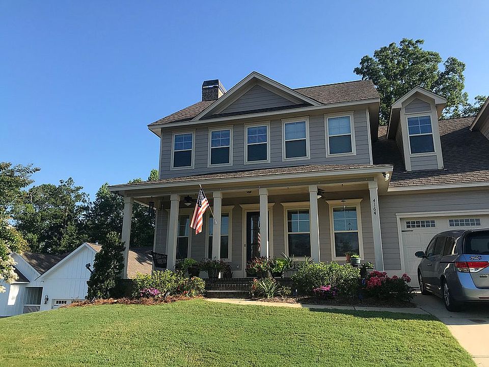 This property in Auburn has all you are looking for! Situated minutes from the Interstate 85 and S College Rd exit, 10-12 minutes from Auburn University and downtown Auburn and 15 minutes to Tiger Town and 15-20 minutes to downtown Opelika! It is also a few minutes from the walking/biking trail on Shell Toomer Pkwy and Chewacla State Park as well as other parks in Auburn. This craftsman style home boasts a large rocking chair front porch with a swing, double car garage and a beautiful view of sunsets in the evenings. When you enter the front, you will see a DR on one side, ½ bath and coat closet on the other. As you walk in you experience the openness of the family room to the kitchen and eat-in breakfast nook. The kitchen has a high bar that accommodates 3 bar stools and lots of cabinets to store the cook’s many tools! Beyond the kitchen is the HUGE walk-in pantry, the washroom and the master private retreat. The master bath has a jetted tub, shower w/ bench and newly added dual shower head (hand-held option). There is a private toilet room and a large walk-in master closet w/ built-in shelves and shoe rack. Upstairs there are 3 bedrooms, one of which has it’s own private ensuite, another is connected to the 2nd full bath upstairs that also opens to the hallway. There is a large bonus room with one walk-in attic and 1 half-attic door for a smaller space great for boxes or toys, etc. The landing of the stairway on the upper floor has a large desk w/ under cabinets/drawers and granite counter – which is a great space for homework or crafts! There is also a heated/cooled/carpeted storage room that could be used as a small office. The pull-down attic stairs provides more floored attic space. And….one more storage area is under the stairway on the main floor which is a nice size. The screened in deck has a mounted TV that will remain w/ the home, a dog door leading out to the uncovered deck area that is large enough for a grill and large patio table. The back yard is fenced and the back property line is beyond the back fence w/ trees that provide a nice buffer to the adjoining property which is undeveloped. There is a zoned water sprinkler system front and back. The screened in porch is a great place for game day or spending evenings listening to the crickets at night or watching the fire-flies in privacy. The neighborhood is a great mix of young and mature families with lots of activities and get togethers for kids and adults. The HOA will sometimes have a food truck come into the neighborhood or the women may get together for various activities. Updates since 9/2019: exterior was painted 9/2019; interior painted w/ lighter more neutral colors including trim, doors, closets interiors, and shelving in Master closet and pantry 9/2019; new shower head in Master shower 9/2019, updated light fixtures in all bathrooms, kitchen eat-in area, DR, foyer and stairway 1/2020. Extended roof of covered deck area: 4/2020, screened in covered deck area 6/2020, updated ceiling fan in screened porch to a remote controlled model 6/2020; installed gutter and down spout over uncovered deck area 5/2020; widened garden on east side of the home, added plants and laid large stepping stones for garbage cans to sit on 4/2020; removed overgrown plants in front garden and added new plants 10/2019; installed over-head storage shelves in garage that will remain with the home 10/2019; installed a curve out shower rod in upstairs hallway bath 10/2019. BUYERS AGENTS WELCOME! Owners will co-op for a closed offer!