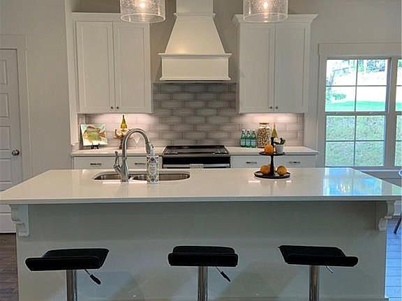 This 5 bedroom home has incredible soaring 2 story great room with upgraded appliance package, designer lighting throughout, quartz counters, and gorgeous lvt wood floors. A private screen porch with fireplace is located across the back of the home. A main level master bedroom with a study, drop zone, laundry room, and powder room make this the ideal home for your family. The oversized garage will hold 2 full size SUV's. Upstairs are 4 bedrooms and 2 full bathrooms with generous closet space and a walk in attic.