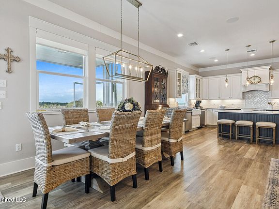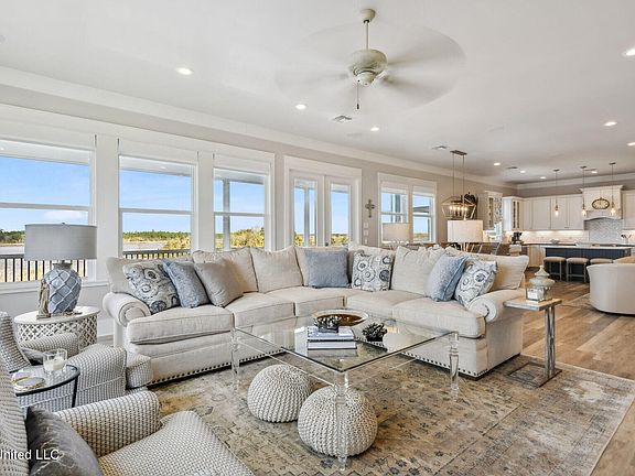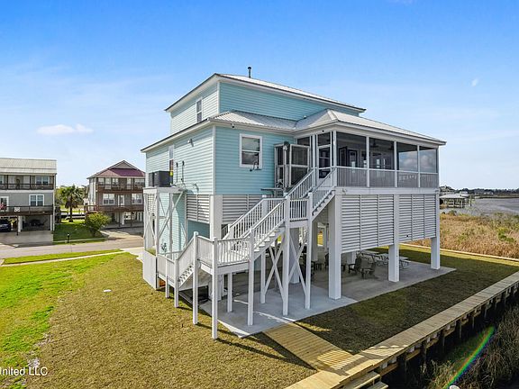 This amazing like new home sits on the banks of Bayou LaCroix with panoramic views of Bayou LaCroix, the natural marsh and the Jourdan River. It's being offered turn-key ready. Just move in. This includes all furnishings, a lot of the art, window treatments, appliances, boat, wave-runners and kayaks. It offers a gorgeous open living/dining and kitchen area, with views from every window. It's 3159sq ft of perfection. 4 bedrooms w/4 baths and 2 half baths. Bathrooms have custom ceramic tile surround. Two additional rooms can be used as a study or playroom. All solid wood cabinets and countertops are granite and marble throughout the home. 10ft ceilings on the main floor and 9ft on the second level. 8'ft doors throughout. A beautiful gas fireplace in the sitting area. There is Crown Molding and Custom window treatments and custom trim throughout the downstairs living and upper level. Luxury vinyl plank flooring with ceramic tile in baths. There is a Security System in place with cameras and alarms. There is a surround sound system on the main living floor and the outside entertaining areas. Windows are Hurricane Rate Impact glass. All insulation is Spray Foam. Exterior Underlayment Sheathing on walls and roof are Zip Brand with all seams taped. The exterior is Hardi-Plank. There is a vinyl bulkhead, a boat house, with a 6000lb SS/Alum Lift installed with 10k motors and gearbox included. 2 floating jet ski docks and 2 floating kayak docks. The home has a 353sqft garage and a mezzanine workshop/storage above it. This home is absolutely pristine and ready to show.