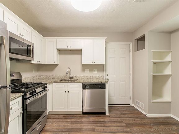 Charming fireplaceStainless steel appliancesSleek granite countertopsClassic white cabinetsSpacious bedrooms