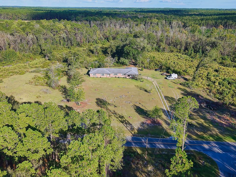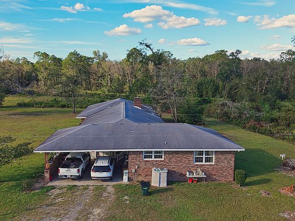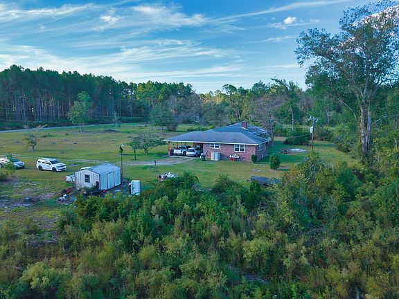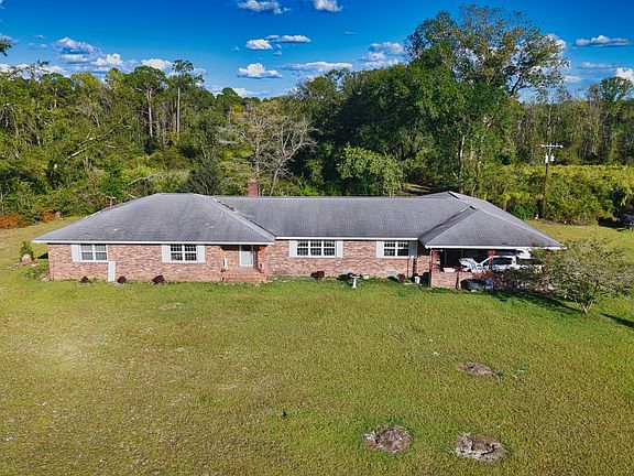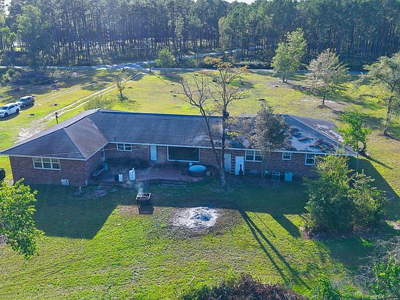 Approximately 1 mile south of Hagan in Evans County, 4164 Perry Rd is a single-level, 4-side brick ranch (c.1965) on about 36 acres of mixed open and wooded land with a meandering stream, paved road access, and frequent wildlife sightings (buyers to verify any intended uses and local regulations). Public records indicate about 3,975 sq ft with 4 bedrooms and 4 full baths, including two en-suite bedrooms. The heart of the home is a large country kitchen with space for a breakfast nook and a deep walk-in pantry with built-in shelves; a classic swinging door connects to the formal dining room, which flows to the living room and foyer for easy everyday circulation and hosting. The kitchen also opens to a rear family room highlighted by a brick fireplace and a wide panorama picture window that frames backyard views; from the family room, a door steps out to a large concrete deck for outdoor dining and relaxation. A central hallway corridor leads to the private bedroom wing where all rooms-including each bedroom and bathroom-are very spacious. The primary suite offers his-and-hers closets and a bath with dual vanities, a walk-in shower, a soaking tub, and ceramic tile finishes. A second bedroom features its own private full bath with a ceramic-tiled tub/shower combo and a built-in desk/vanity niche. Near the attached two-car carport entry is a versatile laundry/second-kitchen/bonus zone; walk past the washer and dryer to reach the entrance of the bonus room/studio in-law suite main area, adjacent to a full bath with a walk-in shower and single vanity. Additional notes include whole-house HVAC and two tank water heaters. No HOA reported. Condition noted as fixer/needs updating-bring your vision to elevate classic bones on a beautiful acreage homesite convenient to Claxton, Statesboro, Metter, Savannah, Fort Stewart, GA-280, and I-16 (times/distances approximate). Mapping references (qPublic and other layers) may illustrate parcel boundary, soils, streams/rivers, and flood mapping for orientation only. Information deemed reliable but not guaranteed; buyers should independently verify all matters important to them, including acreage, square footage, utilities, well/septic, internet availability, zoning/uses, schools, and flood status. Equal Housing Opportunity.