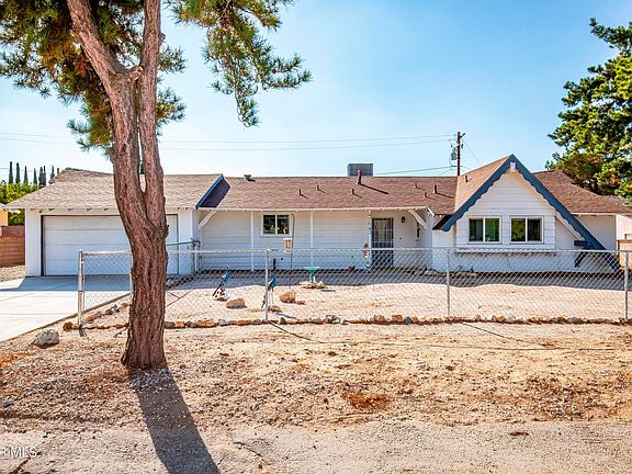 This charming 3 bedroom, 2 bathroom home is nestled in West Lancaster, just a stone's throw away from downtown Quartz Hill. With a spacious 12,409 square foot lot, it boasts unique architectural character featuring scallop-etched eaves, a 2 car attached garage, and fencing in the front yard. Upon entering, you'll be greeted by an open floor plan, neutral color paint, and finished ceilings. Upgraded features include a newer HVAC system, windows, laminate flooring, and ceiling fans throughout. The spacious family room features recessed lighting and a fireplace perfect for chilly evenings. The dining room features recessed lighting, French doors that lead to the backyard, and space for entertaining guests or everyday use. The kitchen has been remodeled with high-end Corian countertops and backsplash, a farmhouse sink, stainless steel appliances(refrigerator included), custom-built cabinets for all your storage needs, and an island. The guest bathroom is conveniently located in the hallway, and all three bedrooms are at the end of the hall. The primary bedroom features a large closet with custom barn doors, while the primary bathroom boasts an oversized shower with custom tile and bench seats, as well as an oval freestanding soaking tub. Step outside to enjoy the fully covered patio and an additional paver patio area. The exterior block walls, mature trees, and shrubs provide a lovely privacy feature, and the two sheds offer ample storage. RV access is also an added perk. This ranch-style community is conveniently located near grocery stores, coffee shops, restaurants, and other amenities, including an elementary school and park. Make this home yours for the holidays!