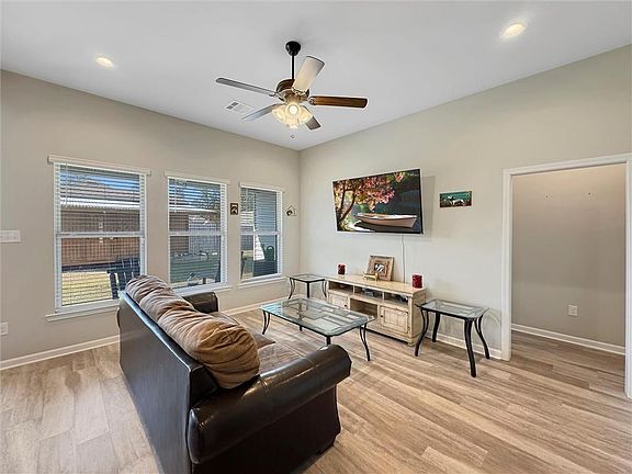 Enjoy peace of mind with a Smart Home System and a Smartcode deadbolt for keyless entry. The energy-efficient R38 attic insulation and radiant barrier decking contribute to a comfortable living environment year-round. Additional highlights include blinds for all windows and exterior doors, an LED exterior fan, and convenient gutters for added protection.