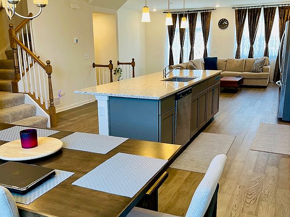 This gorgeous, almost new, three-story townhome has two car attached garage, three bedrooms & 2.1 bathrooms. As you enter the foyer, you'll first notice the flex room/ 4th Bedroom/ Office/ Workout room, this room can be used any which way you like!! The ground level is also home to a coat closet and the two-car garage. The main level has the gourmet kitchen, WalkIn Pantry, spacious Family room, Dining room, Powder room and the deck ready for you to enjoy your morning cup of coffee! Gather guests around the island and share laughter over the dinner prepared in your stylish kitchen. Your spacious family room is the perfect place to watch your new favorite shows or curl up with a new book. Second level has the three bedrooms, two full baths and the highly desirable second level laundry. Your roomy master bedroom has a large walk in closet and attached bathroom with his & her sinks. Dist 204 Naperville schools, and minutes from Costco, Metra, Shopping, Grocery & Highways. The homeowner is willing to rent the home with the couches in family room, dining table and the two beds!!