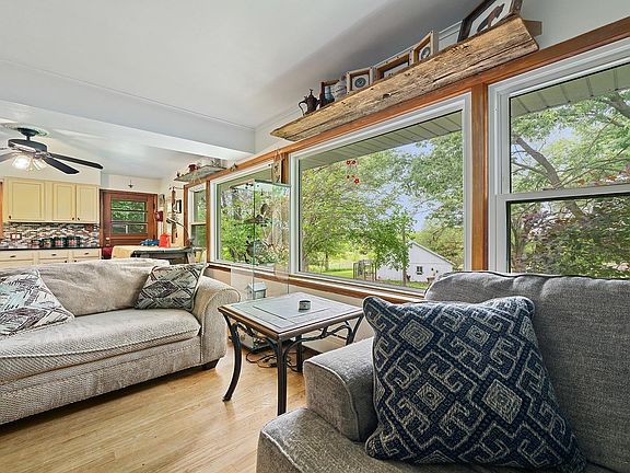 New listing in the country just outside of Oregon! This charming 2-bedroom, 1-bath home is nestled on 3.7 scenic acres and sits high on a hill, offering beautiful views of the valley below. The neighboring property is owned by the DNR, ensuring your privacy and preserving the untouched prairie views for years to come. Inside, the home features hardwood floors throughout, an updated kitchen with quartz countertops, upscale cabinets, and a convenient door leading to the back patio—perfect for enjoying the peaceful surroundings. The bathroom has also been recently updated, and a separate exterior entrance to the basement adds ease for moving large items. A newer furnace offers added comfort and efficiency. Outside, you'll find a detached 2-car garage, an additional outbuilding ideal for extra vehicles or workshop space, a chicken house, a garden shed, and so much more—making this a perfect spot for hobby farming or anyone seeking country living. Conveniently located just minutes from Oregon and close to I-39, with several state parks and endless recreation along the Rock River nearby, this property is a rare find. Call today to schedule your private showing!