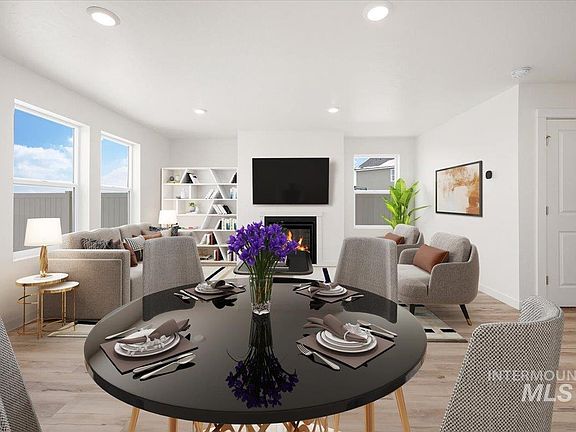 This stunning two-story features an open floor plan, extended covered patio, luxury vinyl plank flooring throughout the first floor and a cozy gas fireplace in the spacious great room.  Den provides space for a home office.  Modern kitchen showcases granite countertops, subway tile backsplash, an island and under-mount sink.  Primary suite boasts oversized walk in closet.  On-site sales office and staged model homes open Monday 3PM-6PM and Thursday-Sunday 10AM-6PM located at 4133 S. Colditz Way, Meridian, ID 83642.