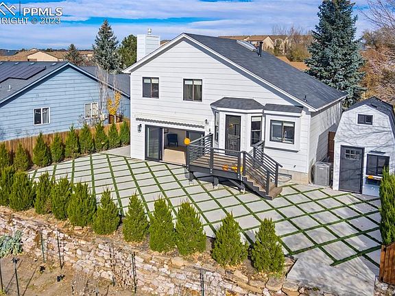 This stunning fully remodeled home is located just off Powers and convenient to Peterson Air Force Base and Colorado Springs Airport. Boasting 4 bedrooms and 3 baths with beautiful mountain views, this cherished home will truly take your breath away. Upon entry, take in the high ceilings and jaw dropping view of the kitchen. Beautiful finishes, appliances and large working island will surely be where everyone gathers this holiday season. A nice banquette seating area makes for a wonderful dining space nook and even has hidden storage in the benches. Before moving onto the rest of the home, be sure to step out onto the composite wood deck to take in those mountain views and enjoy the Colorado weather. Back inside head upstairs to see the bedrooms! A wonderfully sized primary bedroom and ensuite bath awaits. Lots of natural light and a wonderful closet system are just a few of the highlights of your personal retreat. Primary bath evokes a spa like feel. Down the hall you'll find two additional bedrooms and a full bath to complete the upper level. Back downstairs head to the lower level for the living room to relax and unwind. Enjoy the warmth of the fireplace during the winter or open up the impressive wall-to-wall sliding doors to let the fresh air in during the warmer days. Check out the unique and one of a kind patio area! Imagine the summer BBQs or hosting your special events out here. Have a green thumb? A beautiful established lower-level garden area is ready for you. A convenient and must-have custom storage shed with front and back doors and loft space is perfect for all your storage or workspace needs. Lastly, head down to the basement for the final bedroom, half bath and laundry room. A perfect area for guests to have their own space! Homes this amazing don't come around often -- book your showing today!
