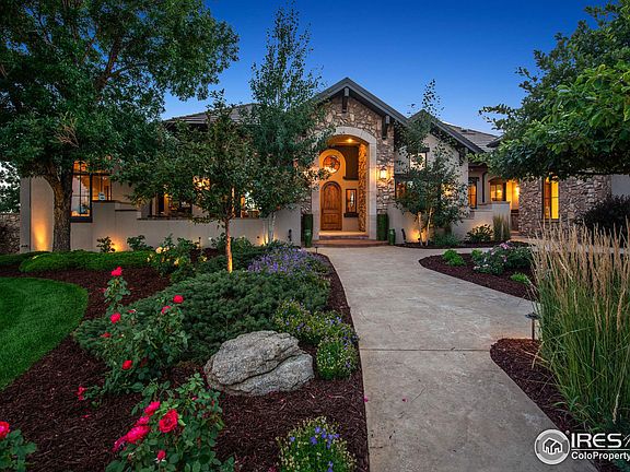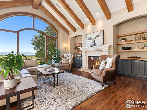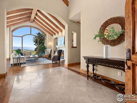 Your private oasis awaits overlooking the Rocky Mountain front range & refreshing Cobb Lake. Nestled on 2 lush fenced acres & bordering conservation space on 2 sides, this remodeled 5 bedroom home offers a gated community & lake rights. Beautifully remodeled & only 15 mins to Old Town FTC, The Hill delivers the convenience of proximity with the space & privacy homeowners crave. Lush landscaping and a circular drive lead to a gracious entry that captures mountain views. A beautifully updated chef's kitchen offers high end appliances, pot filler over the Wolf Range, walk-in pantry & a butler prep area with a built-in Miele coffee machine. Cozy up in the mornings in the hearth room with a stone fireplace & enjoy the miles of views from the dining area. An impressive main floor primary retreat offers beamed ceilings, dual walk-in closets, stunning spa bathroom complete with tile from Italy & a 2-sided fireplace sets the perfect ambiance. Enjoy the private balcony & a secondary main floor bedroom suite features a fully appointed bath. The study displays rich wood built-in cabinetry and a private patio + a well curated dining room sits adjacent to a private outdoor space. The covered veranda, which is home to an outdoor kitchen, gas fireplace & beautiful unobstructed views of Longs Peak & Cobb Lake. Head down the private staircase to abundant vegetable and herb gardens and a fully fenced lush lawn area with mature trees and bubbling water feature. The expansive lower patio is also has a newer hot tub and many additional outdoor seating nooks. Travel to the basement via elevator or grand staircase to find heated floors, fitness rooms, an entertainment bar, a fireplace & theater area. The basement also offers spacious bedrooms with views, a private laundry & multiple walk out spaces. This heated garage includes 2 car lifts, a direct access to the basement, epoxy flooring, hot & cold water, space for a workshop + a bonus oversized garage bay for storing boats and RVs.