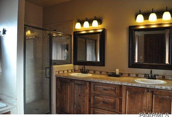 4 Br 3 Bathroom Ranch style home with walk in closets in 3 out of 4 BR. Beautiful knotty alder cabinets and travertine countertops throughout. 17 foot laundry room with custom knotty alder cabinets. One of the bedrooms would make a nice home office. This home boasts a large master bedroom with a big walk in closet and master Jacuzzi tub. 900+ sqft garage with 3 storage rooms inside it to keep family heirlooms safe. Paver patios on front and back with covered porches. Large living room combined with big patios to host parties and enjoy the evening out back. This homes amenities also include 2 hot water heaters for large families or to accompany lots of guests. Forced gas heat and A/C. Fireplace can be gas or wood burning. Custom rock work inside and out and lots of storage.