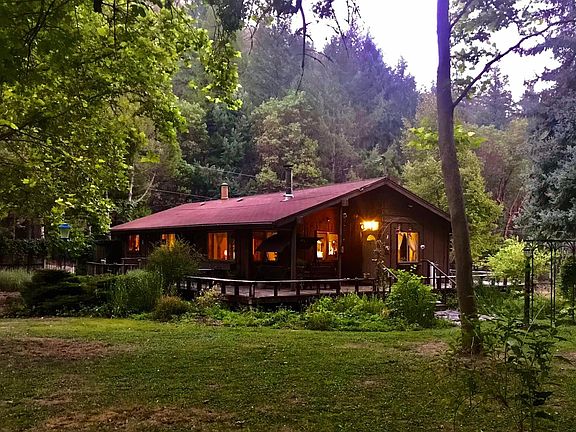 Beautiful 53.57 acre property with pasture and large trees. There is a seasonal spring that runs through the property with small water falls that present calm and relaxing sounds. The property is fenced and cross fenced, and most of the property is accessible from a shared road. The views are of the valley and hillsides that have large cedar, madrone, pine trees and more. 8-foot deer fencing surrounds the home for the safety of the small animals and gardens. there is a large chicken coop and a large potting shed, a semi-trailer with shelves for storage, raised gardens, fruit trees, lots of privacy and quiet. The home is set up with a fire suppression system on the roof. This is a one-of-a-kind property with lots to offer.