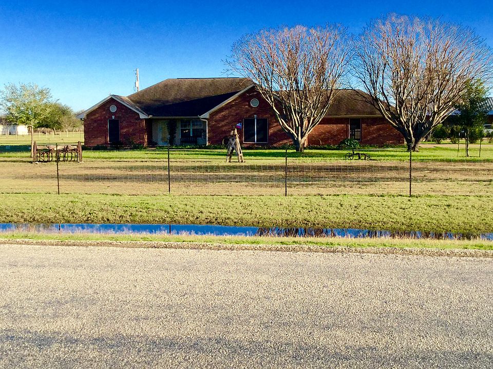 Three bedroom/2 bath home--1941 sq. ft.--5.096 acres. 1250 sq. ft. barn, two 25x50 metal awnings and a 350 sq. ft. efficiency apartment with full bath, refrigerator, small kitchenette with a/c and heat. Land is fully fenced with an electric iron gate. 10x10 dog kennel. In spring 2015, new a/c heating Bryant 16 series/4 ton unit installed, custom Kent Moore cabinets throughout home, new Kohler toilets, granite countertops in kitchen and bathrooms and new appliances with additional 3 year warranty. ADT Security System. If interested in scheduling an appointment to see this property, contact Dawna - 979-777-3770. NOTE: we are unable to owner finance. For serious inquiries, additional photos will be sent.