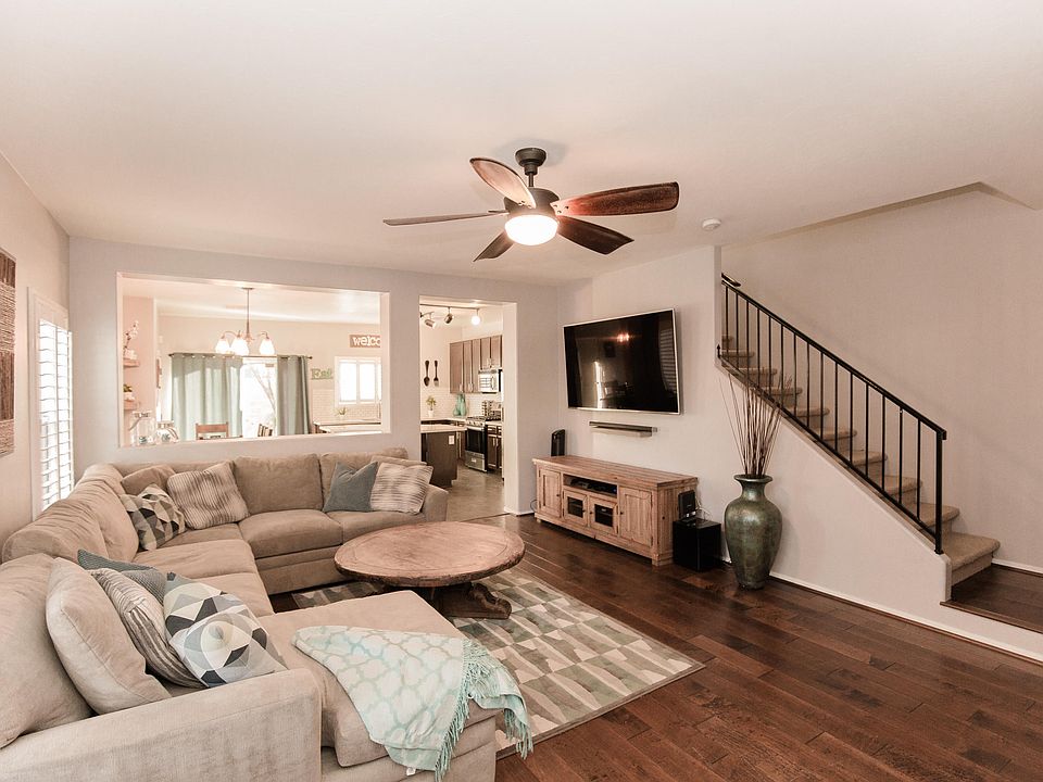 This beautifully updated, light and bright 3 bd/2.5 bath will not disappoint! The swanky kitchen includes new quartz countertops, subway tile backsplash and freshly updated cabinets and hardware. Downstairs is carpet-free w/ lovely wood floors in living room and new, modern tile in kitchen and baths. The downstairs windows are complete with custom wood shutters that accent the gray walls perfectly. The laundry room is located upstairs for convenient access to the bdrms. A loft area provides additional space for Netflix and chill, a home office or play area. The master bdrm has large windows that provide lots of light on this North-South exposure home. Backyard is quaint and relaxing with low maintenance. Come see this north-central gem convenient location to shops, the Riverwalk!