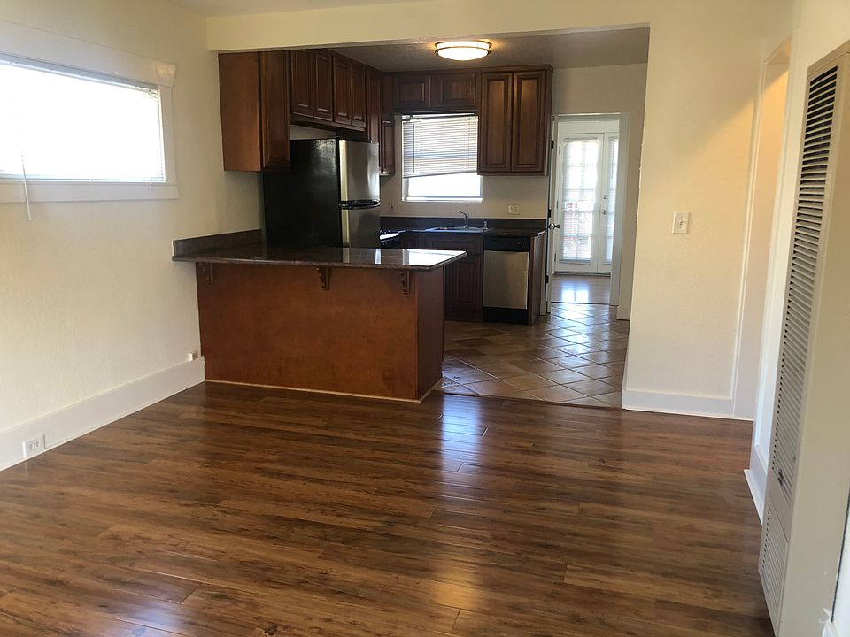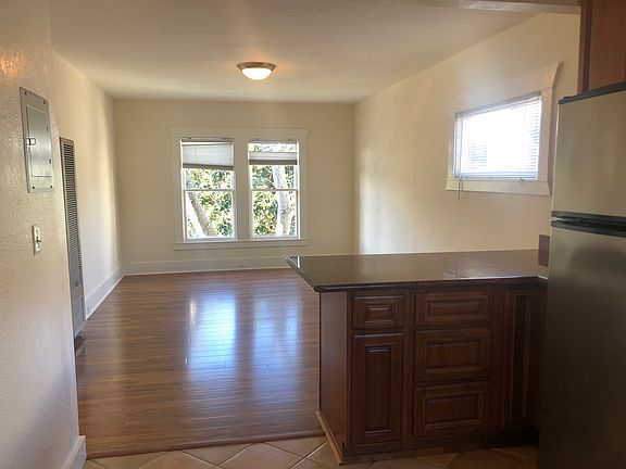 Sweet apartment in a lovely four-plex. It's on the top floor with two bedrooms and one bath. One of the bedrooms is smaller. There is a large storage unit in the backyard that is designated for this apartment. Please email with any questions or for a showing. Owner pays for water and garbage. Year lease followed by month to month. Pets okay. No smoking.