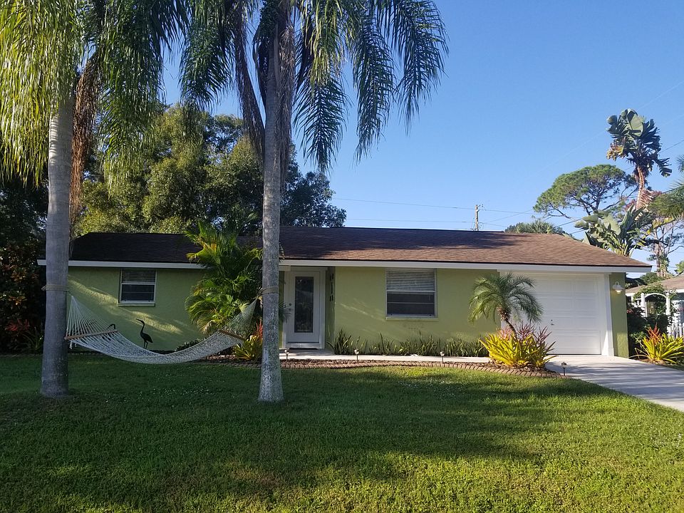Approx. vicinity 1 mi. west of 41 off of Alligator Drive. 1 mile from private beach, boat ramp, shopping & dining. 4 mile drive to historic downtown Venice. Selling FULLY turn-key furnished. from the linens to the silverware. - Master with en-suite, brand new Tempurpedic king bed and tv. - Living room features a brand new 55" tv. - 847 sq ft under air living area. - Air conditioned extra deep garage 312 sq ft garage. - 186 sq ft lanai. - 1345 sq ft total. Upgrades: - New AC/Heat - Filtered glass front door. - 6 panel interior doors. - New sliding patio door. - New exterior lighting. - Freshly painted with matching shed, screened lanai, fire-pit, BBQ grill, patio table and chairs, beach accessories and a bicycle. Home is located in an area of nicer homes with quiet neighbors 1.5 miles from Shamrock Park Legacy Bike Trail ending in Sarasota. Additionally, centrally located within 1.5 miles or less; tennis courts, nature center, nature walking trails, intra-coastal bicycle/jogging path, bird rookery, dog park and public beach