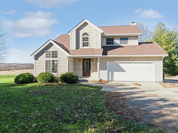 Welcome to this beautiful acreage! This 3 bed, 4 bath walkout has fabulous views of rolling hills and the countryside! Inside you'll love the large main level with great space for entertaining. A formal dining and living room full of natural light, leads into a great kitchen with a spacious dinette area. The family room has a beautiful stone fireplace. The upper level has a main suite with a tiled shower, quartz counters, double vanity, and a walk-in closet with built ins. There’s two more bedrooms connected by a jack & jill bath. The lower level offers a huge family room, dining and workout area, storage and ¾ bath. Too many updates to list, including new Septic, A/C, and flooring. Please see Feature Sheet.