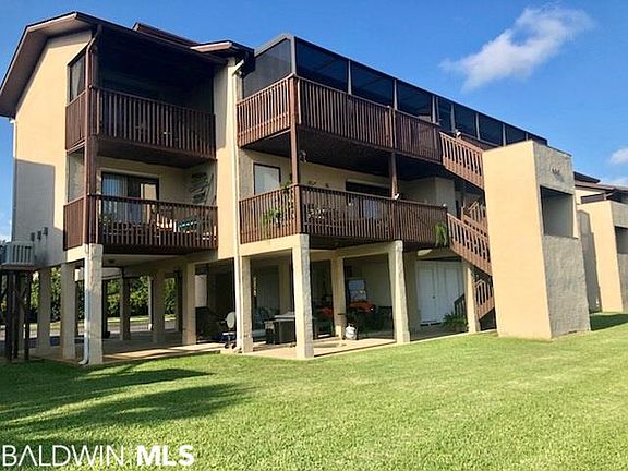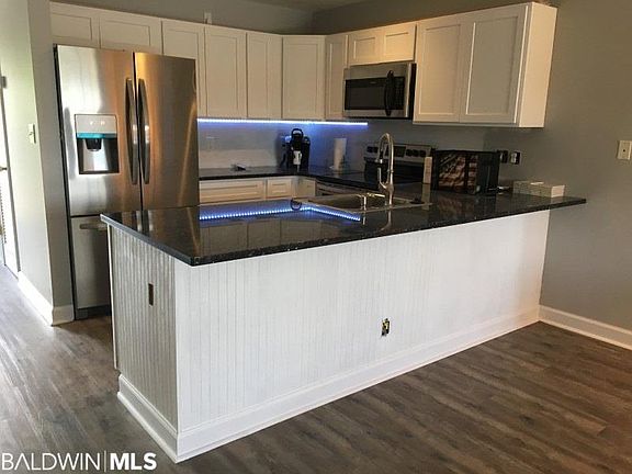 in process of finalizing complet remodel 2 bedroom condo on top floor of a 6 Plex building. Kitchen appliances are new matching stainless steel. Flooring throughout consists of luxury Vinyl. Bathrooms completely upgraded. Water lines have been replaced with Pex pipes. Screened in patio and retractable awning. The unit has it's own boat slip and a 10,000 lb boat lift. Two storage closets. Minutes to fishing locations on Bon Secour Bay, river and Mobile Bay. A must see condo.