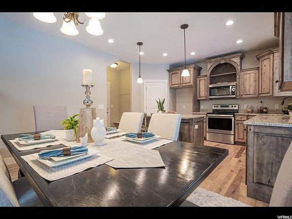 Mountain luxury just minutes from Lehi and steps from adventure. This beautifully finished 2-story home in east Highland will impress! You'll love the large master on the main! The en suite bathroom has a jetted tub & separate shower. High ceilings on the main level and vaulted ceiling upstairs provide for a spacious feel. You've got to see the home to appreciate the finishes which include: hardwood, carpet & tile flooring; granite counter tops; high quality cabinets; covered patio; and oversize windows to enjoy the majestic mountain views! Including Lone Peak from the back or Timp from the front covered porch! There's even an unfinished basement for tons of storage! Sq ft figures are provided as a courtesy estimate only and were obtained from co. recs. Buyer is advised to obtain an independent measurement.