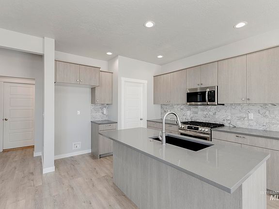 Feel enriched in your brand new home located in Meridian, Idaho! The Owyhee 1597 floorplan is a two-story home that effortlessly blends functionality with modern design. Downstairs, you'll discover a practical half bathroom, offering convenience for both residents and guests. The kitchen boasts upgraded finishes, including stainless steel appliances, a gas range, and stylish solid surface countertops. Large windows fill the space with natural light, enhancing the inviting atmosphere. Head upstairs to find an additional full bathroom serving the two generously-sized bedrooms, streamlining morning routines. The primary suite is a standout feature, complete with a walk-in closet for your wardrobe and storage needs. Photos are of the actual home!