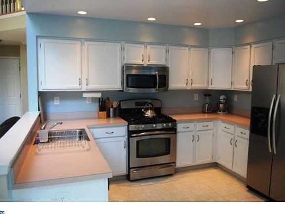 Much to love about this pretty Buckingham Square Colonial in this very desirable community! Popular Nottingham floor plan is the only one that features that sought-after two story family room and back of the house staircase! Enter the home to the front-to-back living room and dining room (with brand new carpet and pretty chair and crown moldings)and then head to the sunny kitchen with light cabinets and separate breakfast area. Kitchen features new stainless appliances and a breakfast bar that opens to the family room. Family room with dramatic gas fireplace with stone to the ceiling flanked by windows and the pretty open and turned staircase to the second level. Upstairs, the main bedroom features a cathedral ceiling, wood blinds and walk-in closet with built-ins. En suite bath sparkles w/white tiles and vanity! Three more nicely sized bedrooms feature neutral paint and carpet. Hall Bath and very convenient upstairs laundry completes the upstairs. More space and good storage in the finished basement with matted work-out area and built-in bookcases. You'll spend lot of time in your private yard with evergreen back-drop and pretty patio with great lighting!