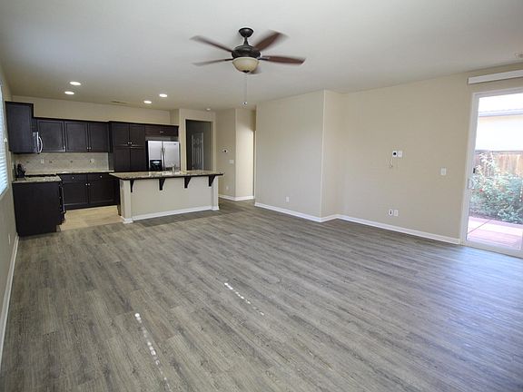 Just Reduced!! Move in Ready! This cute single story home located in Harlan Ranch! There are 3 Bedrooms and 2 bathrooms, The kitchen and dining room are open to the living room creating a very open floor plan! This home features new vinyl plank flooring throughout the living room, dining room and hallway with newer carpet in the bedrooms, granite counters, upgraded bathroom tile, upgraded cabinetry, two tone paint, 2 inch blinds. 2 patio areas and attached 2 car garage. The tenant will have access to all of the community amenities including the pool, parks and clubhouse. The rent is $1,795 with a matching deposit. This home is move in ready! 1 Year Lease