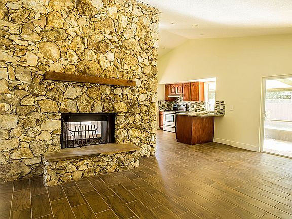 Turn key gorgeous 3 bed 2 bath single story home on a corner lot of a tree line street. As you enter this home, the focal point is a natural stone wood burning fireplace, on one side you have your living room and on the other side, you family room. The kitchen offers an open concept, views to the lanai and well manicured backyard, granite countertops, stainless steel appliances and lots of cabinetry. The current dining room could stay as such or can be turned into a spacious family room great for entertaining. This property also features 3 bedrooms and 2 full bathrooms and a 2 car garage. High ceilings in the living areas and recess lighting make this space unique. Recent upgrades include a new roof, AC, garage door, newer appliances, fresh paint in/out and a great selection of Florida plants throughout this .32 acre lot. To give you piece of mind, we are offering a 1 year Home Warranty paid by the seller at close. Schedule your showing today!!