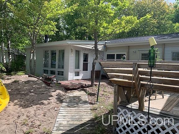 How about a home on Cedar Bay Road ON Lake Superior? Sandy beach, fantastic views, peaceful, beautiful location.The home is a combination of a mobile(1960)/stick built (2005) home. The home features a family room with a fireplace, three bedrooms(current owner uses the third bedroom for an office), kitchen, large panty, dining/common room, laundry room. A new roof was installed five years ago. Drilled well and septic are functioning properly. There are two out buildings for storage. One was the sauna-and could be again! The Black Creek Nature Sanctuary Hiking Trail is across the road. The current owner has used the home as a summer residence. Several modifications would be required to use the home year around. Taxes are estimated and may change upon sale of the property. Minimum 72 hour response time on offers.