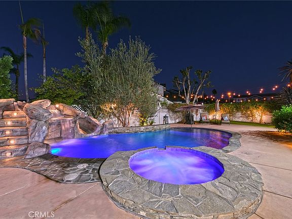 Wonderful opportunity to own a gorgeous end of culdesac pool home on large lot in Yorba Linda. This entertainers delight has numerous upgrades & amenities including: 4 DOWNSTAIRS BEDROOMS plus large UPSTAIRS BONUS ROOM & 3 bathrooms, kitchen featuring granite countertops with barstool seating, grand kitchen table eating area with perfectly designed accordion door system which opens to a massive 702 SF OUTDOOR CALIFORNIA ROOM offering high cathedral ceilings, a gas fireplace, built in BBQ & vent hood, granite countertops with bar seating & in counter firestrip, double headed keg setup, stainless steel stovetop & vent hood, tumbled pavers, beverage fridge, built in outdoor electric heater, dual ceiling fans, surround sound, beautiful wrought iron wall additions, overhead party lighting, awesome mini pebble tec pool/spa with water slide, waterfall, grotto, baja step & multi color lighting feature, artificial grass, avocado & lemon trees plus outdoor sheds, large family room with brick fireplace, crown molding, & surround sound speakers, double door entry, all four bedrooms are downstairs including the primary bedroom suite with ceiling fan, crown molding & side yard access, good sized secondary bedrooms with ceiling fans & mirrored wardrobe closet doors in beds 2 & 3 & track lighting in 4th bedroom with built in office system, primary bath with 2 mirrored wardrobe closets, dual vanity, travertine flooring, & tumble stone shower/tub combo, bath 2 recently remodeled with new tub, tumbled marble tiles plus travertine floors, & bath 3 sets up beautifully with side door to pool deck, massive upstairs bonus room with vaulted ceilings, two dormer windows, two ceiling fans & a built in desk system, luxury vinyl plank flooring throughout, double paned windows, plantation shutters, 3 car attached garage with epoxy flooring, water softener, sprinklers & malibu yard lighting with timers 4 zoned HVAC system, owned 12KW solar panel system for huge energy savings, no hoa, no mello roos & award winning schools. Welcome Home!
