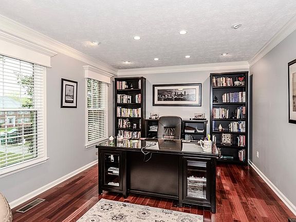 Beaut 3 sides brick traditional home will charm you from the moment you lay eyes on it! Brazilian cherry hardwds greet you, extending to study & dining rm. Spacious fireside family rm opens to fabulous deck overlooking newly landscaped, level byard. Spacious eat in kitchen w/granite c-tops, updated stainless stl appls. Sep laundry rm. Butler's pantry/bar. Master Suite boasts spa-like bth w/soaking tub & custom frameless shower, heated flr, his-her granite top vanities & cust cabinets. Lower level: large bonus rm, office w/built-ins & heated flr; full bth. Newer windows.
