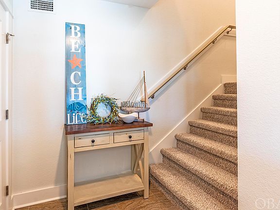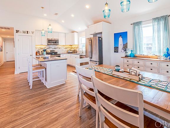 This lovely and well-built three bedroom home with two full and one partial baths is calling you. It is in impeccable condition and will be sold tastefully appointed with quality furnishings and ready for your enjoyment as a second home, primary residence or vacation rental. The top floor features a roomy greatroom area with Luxury Vinyl Plank (LVP) flooring throughout. The luxurious kitchen features solid surface countertops with a custom tile backsplash and GE stainless steel appliances. Just down the hall you will find the master suite and two roomy bedrooms with a shared bath. As you descend the stairs the half bath is conveniently located just at the first landing. The lower level is home to a large utility room and the dry entry. The deck is surfaced with a low maintenance composite material and features both a covered area and an open space to bask in the sun and enjoy the view of the pond just across the street. The spacious carport area provides dry entry and of course, there is a nice outside shower to rinse off the sand and salt after a day on the beach. This home is designed in a way that should provide for expansion of the lower level and just behind the home there is “Accessory Structure” area that could accommodate a pool if desired. Don’t forget that you will also have access to the amenities of the Kinnakeet Shores community. Oh, and the Fortified Roof is just the cherry on top of this great home. You won’t want to miss this one!