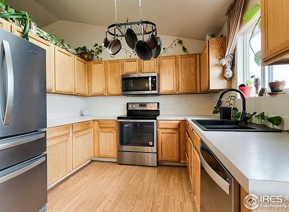 Situated in the desirable Buckhorn Village in NW Loveland this spacious ranch boasts 5 BR, 3 BA, a first floor master bedroom suite w/ private bath, gas FP, cathedral ceilings, 2 living rooms, new appliances, lg. deck, walk out basement, additional patio & fenced yard. The versatile floor plan supports multiple lifestyle needs. With a play-ground close by and walking distance to the Ponderosa Elem, this is a must see. Backyard sod to be installed soon.