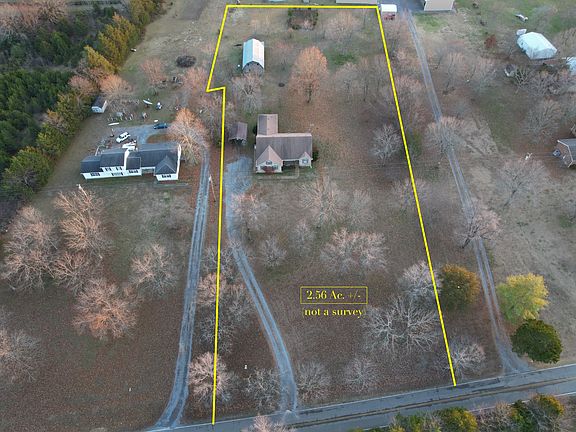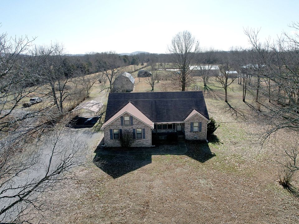 Well-kept 2.5 ac+/- mini-farm with insulated shop. All brick home, just under 2,000 sq. ft. (floor plan in documents). Bedrooms on same level, large master bath with walk-in closet. Dining area off kitchen (appliances remain); walk-in pantry. Sun room/office, laundry room (W&D remain). Unfinished second level with plumbing for future bath. High-speed internet available. Attached two-car garage & detached carport. Shop (24' x 60') includes plumbing for vac & air systems, wired for 220V. Loft above; enclosed lean-to at rear.