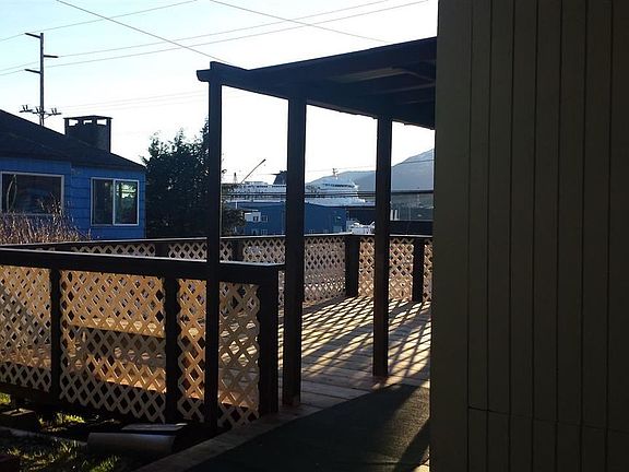 Completely Darling! This 1940's home has been lovingly maintained and is in solid condition. Original open floor plan with a extra spacious kitchen with a propane stove and access to the beautiful new deck. The living room has a water and airport view. Centrally located wood stove keeps the whole house warm and toasty. Full open attic is fantastic storage or additional living space. Metal Roof, full shop/basement, beautiful level yard and zoned commercial. This little home has it all.