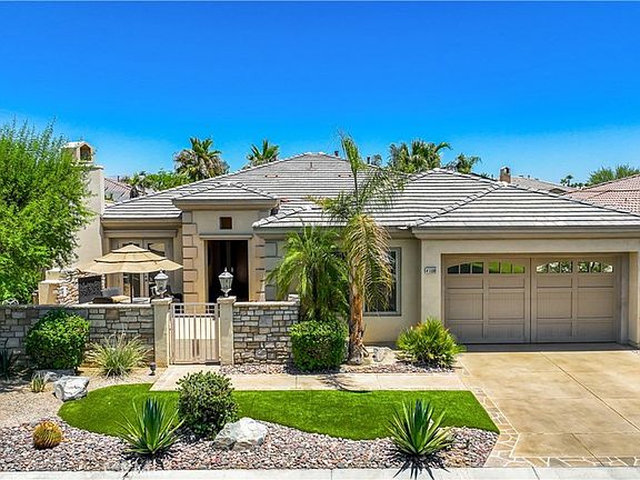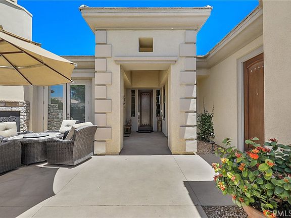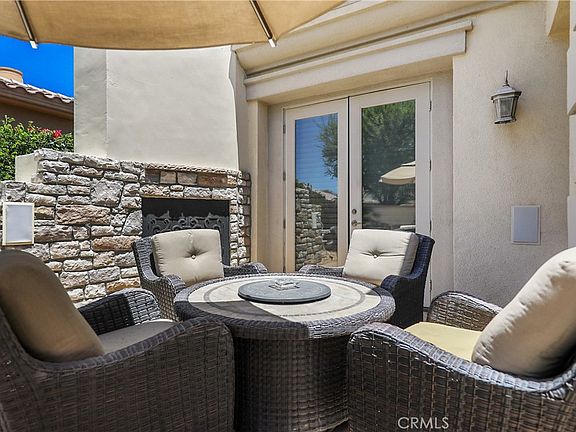 Welcome to 41688 Via Aregio! This stunning home is nestled within the gates of exclusive Venezia. There are only 94 homes in this very centrally located development. This property offers the epitome of elegance, style and comfort. As you enter through the courtyard you are greeted with a stacked stone fireplace and a studio Casita with its own private entrance. The grand entry has a beautiful mosaic and soaring high ceilings to greet you. Immediately to your left is the formal dining room with architectural ceiling and French doors leading to the front courtyard. To your right the double door entry leads to the spacious office. This extensively upgraded home has too many custom features to list (for complete list see additional supplement). Amenities include all custom cabinets, custom moldings, slab granite counters in most rooms, French travertine flooring, custom window coverings and wallpaper. The entertainers gourmet kitchen with breakfast area and butlers pantry open to a large open family room with fireplace and wet bar. Outside you will find your own breathtaking private oasis with a salt water pool, spa and several waterfalls for ambiance. Both front and back yard have artificial grass. There is even a dog run on the side yard with artificial grass. Under the covered patio there is a commercial heater and a commercial misting system, and of course a built-in BBQ with side burner! The Primary suite is a peaceful retreat overlooking the pool with a large walk-in closet and a luxurious spa-like bathroom. There is also an ensuite bonus room which could be an additional closet, workout room, study, etc. Secondary bedroom down the hall and is also ensuite with a beautiful full bathroom.The private Casita has a Murphy bed, custom wallpaper and a small kitchenette area in the closet. The garage has a new epoxy floor and a mini-split A/C and lots of shelves and storage.This home has everything you could possibly ask for....and more!!