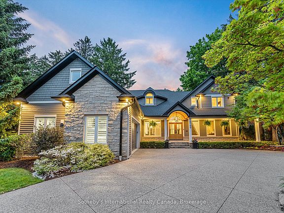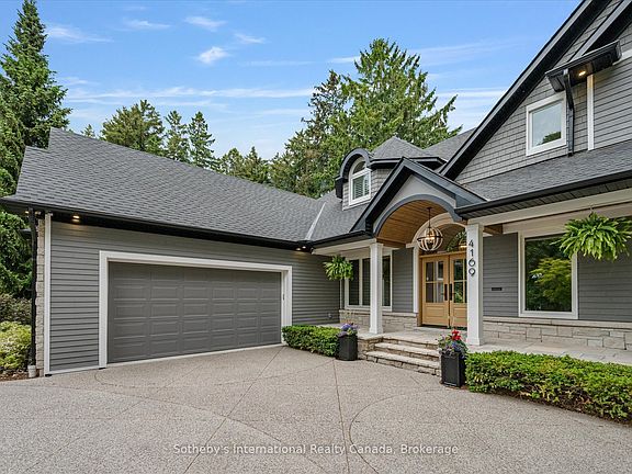 Timeless sophistication meets transitional design at this one of a kind property. Situated on a desirable half acre lot with gated backyard access to a private park in Burlington's coveted Shoreacres - this is a rare offering on prestigious Lakeshore Road. With 5+1 bedrooms, 4.5 bathrooms and nearly 7000 square feet of living space, this fully integrated smart home boasts the ideal floor plan with luxury amenities at every turn. Enter the grand two storey foyer to be greeted by a warm open concept living area. The great room is the heart of the home with soaring 18 vaulted ceilings and a stately 2 storey gas fireplace. The generous dining room is outfitted for a table of ten with built in speakers while the family room is encased in windows with cathedral ceilings and a second two storey gas fireplace.The chef's kitchen features top of the line integrated appliances, caesarstone quartz countertops, contemporary walnut trim, built in speakers and an island overlooking a built in wine cabinet, coffee bar, and an eat-in dining den. The main floor primary suite is an everyday retreat with a wall to wall window view of the lush backyard and a walkout to the terrace. The spa-like 5 piece ensuite includes a freestanding tub, walk-in shower, double vanity and built-in speakers, plus dual walk-in closets and a dressing room/office - a former bedroom. Upstairs there are three more bedrooms, one a private suite and the others with a shared ensuite. The lower level is a dream with a theatre room, lounge with wet bar, billiards room, games room, gym with rubber flooring, plus a bedroom with a cedar closet and 3 piece semi-ensuite.The private resort-like backyard features a fiberglass pool with spa and waterfall, sport court, and gated access to Glen Afton Park- a no maintenance extension of your own backyard. Located mere steps to the Lake, plus easy access to downtown, the QEW and both GO stations. Live the life you've always dreamed of at 4169 Lakeshore Road.