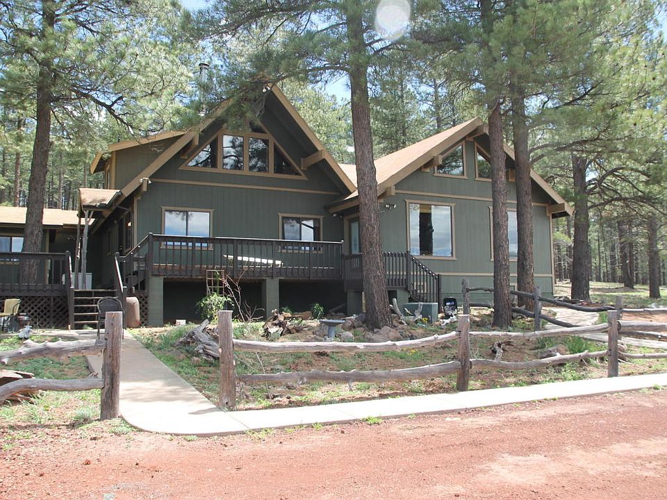 One of a kind property just south of Williams. Beautiful secluded home on 10 acres of Ponderosa Pines with some of the best views of Bill Williams Mountain in the area. The main house is a fully remodeled 2,200 Sq. Ft. 2 bedroom plus loft, 2 bath house with a 1 bedroom/1 bath separate guest quarters.The property features plenty of open deck, horse set-up, barn with stalls and workshop, RV hookup and several other small out buildings. Property is bordered on two sides by National Forest. Home was previously used as a very popular vacation rental. Property is fully fenced for privacy. Lots of peace and quite plus abundant wildlife in the area.