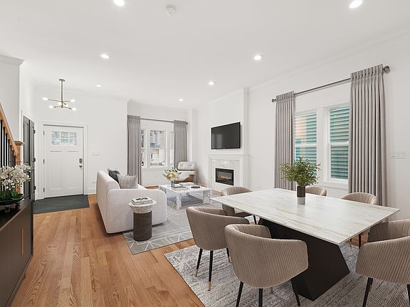 This gorgeous NEW CONSTRUCTION 4-bedroom and 3.5-bath home is located in the charming area of Old Irving Park. The home is near public transportation, restaurants, and shopping areas. The first floor features 10' ceilings, solid oak hardwood floors, and top-of-the-line finishes, such as a large living room with a fireplace and a roomy dining room. This home features open-plan floors, maximizing the space to its most efficient use allowing plenty of storage and breathing room. The Chef's Kitchen is large featuring stainless steel appliances, slow-close cabinets, Quartz Countertops with a waterfall island, and a spacious pantry. This home has large windows, allowing a lot of natural lighting. The Spacious Primary Bedroom has vaulted ceilings, built-in closets, and a Bathroom with heated floors and a soaker tub. The finished basement has a full bathroom and a wet bar. Other features are a two-car garage with a rooftop, two laundry rooms, landscaped back and front yards, and more that await you to see in this house.