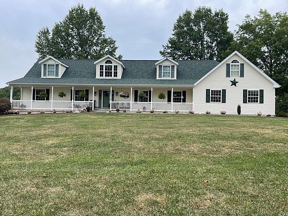 This country ranch home welcomes you with a full length covered front porch. On the main level you will find ample space in the living and dining rooms, a kitchen with custom cabinetry, and just off the kitchen you can walk out to an absolute gorgeous view on the covered back deck. Overlooking one of the widest sections of MTL. Meanwhile back inside there's a guest bathroom and laundry off the hallway that leads to a wonderful master suite, with separate walk-in closets for him and her. Upstairs are 2 bedrooms and an office that would also qualify as a bedroom if needed, along with a full bath off the hallway. The basement has a great family room with a walkout overlooking a stocked pond. Geothermal heating and cooling too. 30x50 pole barn with full concrete and electric with lean to are just down the drive. This 20 acres is a premier property on MTL featuring arguably one of the top views anywhere on the lake. Located just 2.5 miles from Blackjack Marina. Call today for your showing.