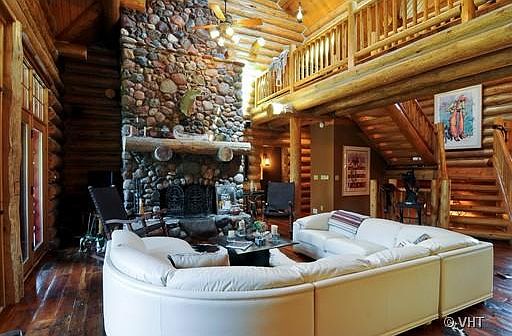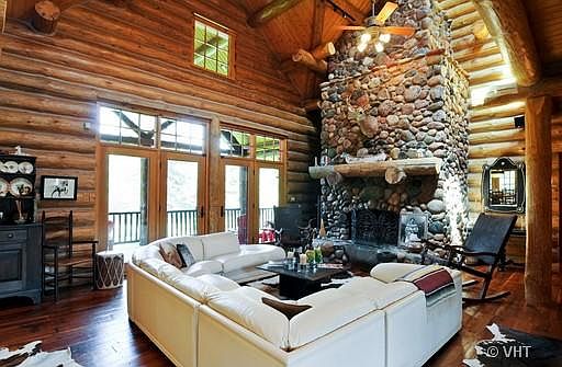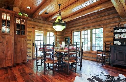 This Luxury Log home owned by well known restaurateurs is ne stled among 10 acres in an area of fine equestrian propertie s. It features include a fabulous gourmet Viking kitchen, s tunning master suite with fireplace and separate shower room , vaulted ceilings, screened-in dining area, massive rear de ck, firepit, and hot tub. The magnificant landscaping make the "Crooked Pine Ranch" a perfect "10".