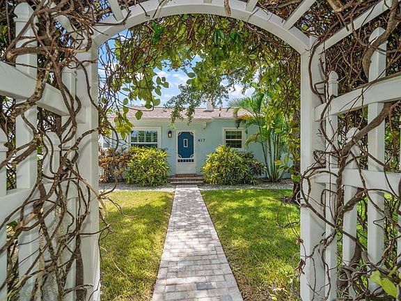 Palms cottageQuiet courtyard areaFlorida homePretty fenced-in front yardSpacious light-filled roomsFire pit and grill