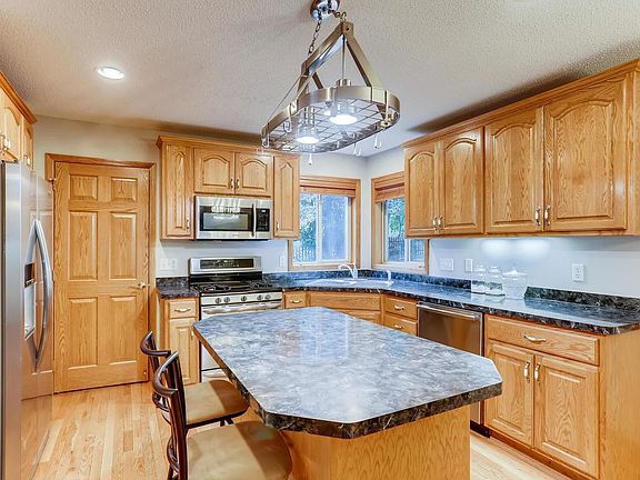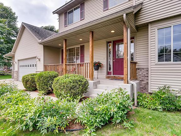 Lovely 2 story nestled into a gorgeous wooded & fenced lot w/ ample yard for play. Heated garage, charming front porch and a spacious deck off the kitchen area. You will enjoy the kitchen that is open to the family room featuring a gas fireplace and nature filled views of the back yard. Need a separate space? Walk right on down to the lower level family room with another bedroom and bath. Walking trails, parks and more!