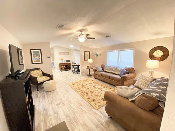 Recently REMODELED TO PERFECTION, this 2BR/2BA home with over 1200 sq/ft boasts top grade finishes from floor to ceiling. Finishes included new vinyl plank Lifeproof flooring throughout the home, stainless steel kitchen appliances and brand new shaker kitchen and bathroom cabinets. The interior walls have been replaced with 1/2 drywall and freshly painted and the insulation has been replaced with a higher rated insulation. Other features include a brand new metal roof, new power pole and updated electrical service, brand new double paned windows, new doors, new plumbing fixtures and a reverse osmosis water system. The home is being SOLD COMPLETELY FURNISHED. The double lot is large enough to accommodate a RV in addition to the large storage building already situated on the property.