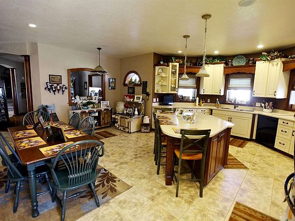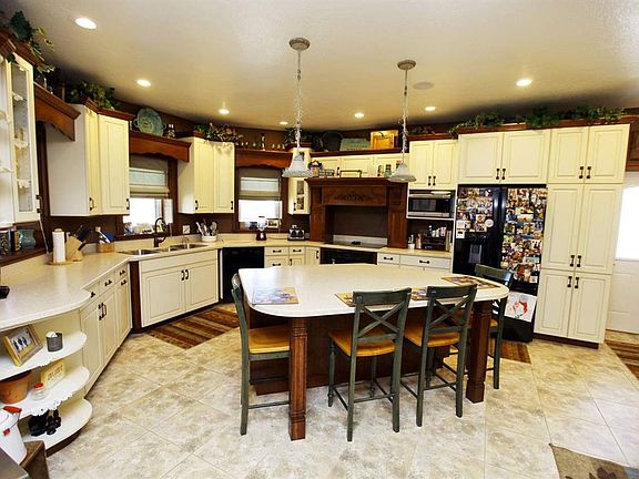 One of a kind custom home! Pulling up to this home you'll be greeted with amazing brick curb appeal with a concrete deck. The driveway is extra-large with RV parking/plug-in area. Walking into the home you'll be pleasantly surprised with the custom kitchen with custom cabinets from Minot Sash and Door along with a large island, dual ovens, Corian counter tops throughout. The kitchen is massive with tons of cabinets, storage, pull outs, & soft closed doors. The dining room is open to the kitchen. The formal dining room also is open to the kitchen. There is a 1/2 bath off the kitchen for your added convenience. The living room is large with custom fireplace/mantel area. The living room has access to the backyard patio. Main floor also features an office area, bedroom, main floor laundry, & a full bath. Last but not least, before going down the stairs is the master bedroom. The master bedroom is large enough for all your furniture & also has a master suite with a walk-in shower, jetted tub, dual sinks, & walk-in closet. Headed downstairs there are 2 other master suites with jetted tubs & walk-in closets--WOW! The living space downstairs is one to remember with a game room area, 1/2 bath, & lots of room to entertain. Getting to the best part of the house, the fully equipped theater room with amazing surround sound, 144-inch projector screen, 10 recliner chairs all of which conveys with the sale--AWESOME! The theater room area also has a bar/snack area. Agent is related to seller.