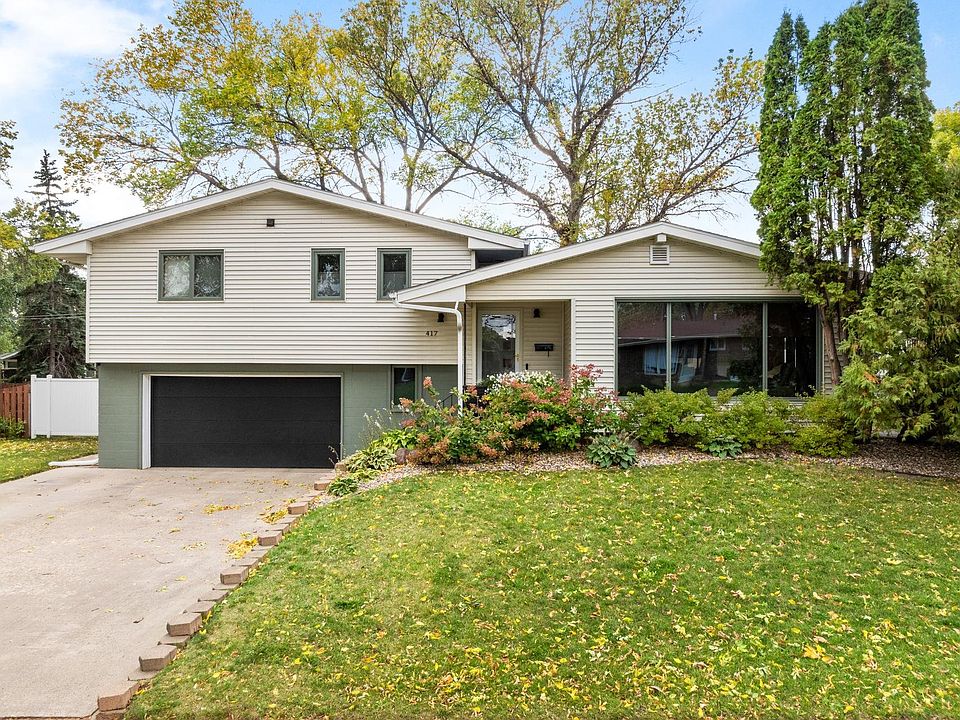 Welcome to 417 24th St NW, a charming multi level nestled in the desirable Bel Air area. The original brick fireplace, hard wood floors, wood beams, large windows and unique layout make this home a must see. The updated kitchen has so much storage, counter space, an island, stainless steel appliances, brick wall accents and patio door access to the back yard. The living room boasts light from the large picture window! The upper level you will find 2 bedrooms and a full bath along with the primary suite with an updated 3/4 bathroom. Down from the kitchen is access to the attached 2 stall garage, a large mudroom with storage cabinets and a 3/4 bathroom. The basement has a large family room with a wood burning fireplace, the laundry room and multiple storage rooms. The yard is fully fenced, has a partial covered patio, mature trees and a shed for additional storage. Don't miss out on this unique property!