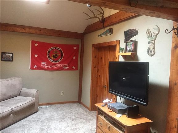 Remodeled to look and feel like a lodge. Custom cabinets and doors. Skylight in Cathedral ceiling. Spiral stairway to a loft. Updated appliances that will stay with sale including both sets of washer and dryers. The shop has a 10' automatic door and plenty of room for projects. Storage shed stays. Covered deck off back door and a covered gazebo in front for the downstairs apartment. Plenty of parking. Great for rental income or live on one floor and rent out the other to help pay mortgage. You must see inside this one!