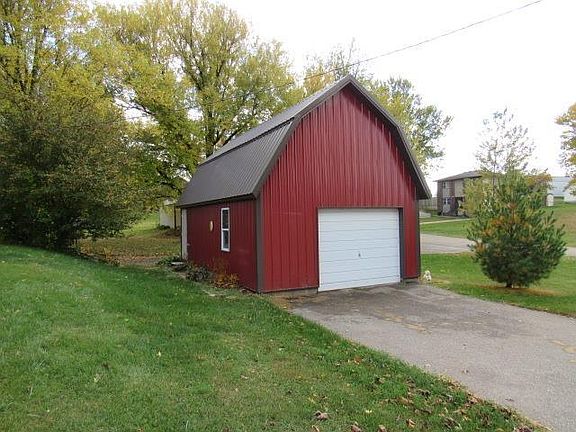 Looking for that small town living??? Look no more! This home sits on over a 1/2 acre and includes a large home with a deck, a detached 3 car garage/shed and a cute red barn workshop that can also be used as a garage or a MAN Cave or She Shed! the home features a bedroom on the main floor plus a master suite with a huge closet and a master bath with a custom tiled snail shower. Now this master is large and has a fireplace to boot! The kitchen is galley style but enough room for all the cooks! There is another full bath on the main floor with laundry hookups, dining room and a living room! The upper level has a 1/2 bath, foyer area and another bedroom. The basement level has so much storage and a tuck under 2 car garage. There is a wood deck off the back for entertainment and a really nice sized yard with enough space for a family reunion! Call today for a private showing.